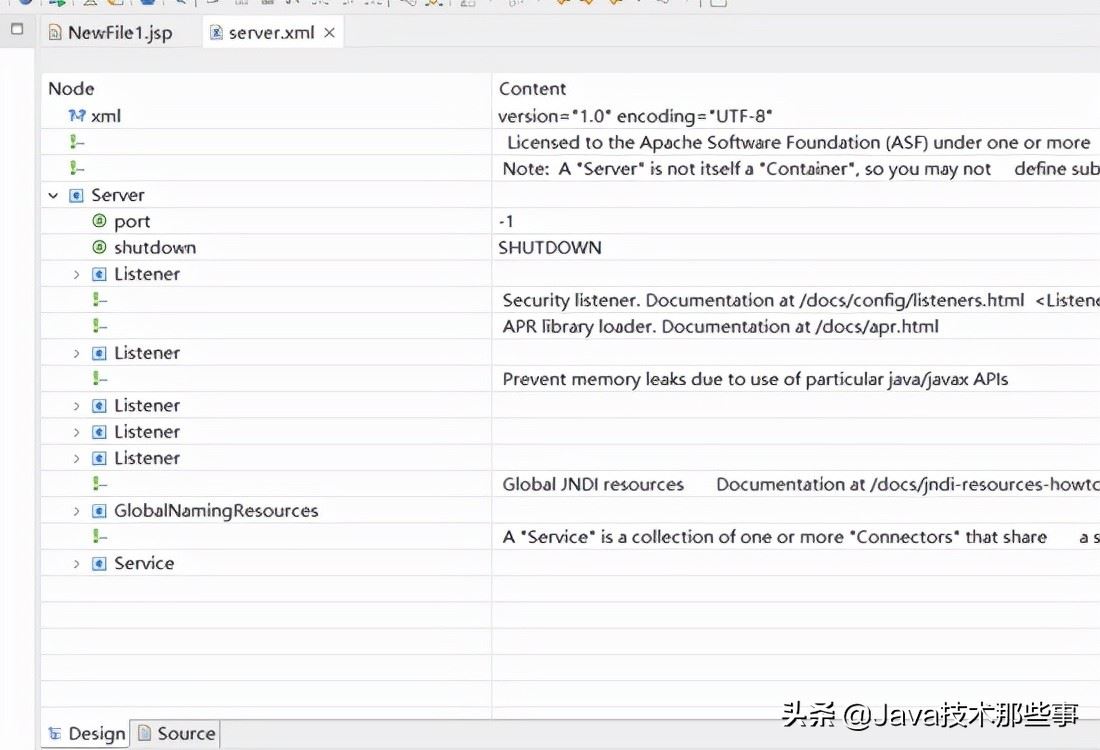 1.在左側servers中選擇server.xml文件,雙擊打開