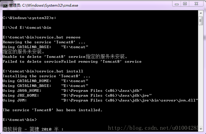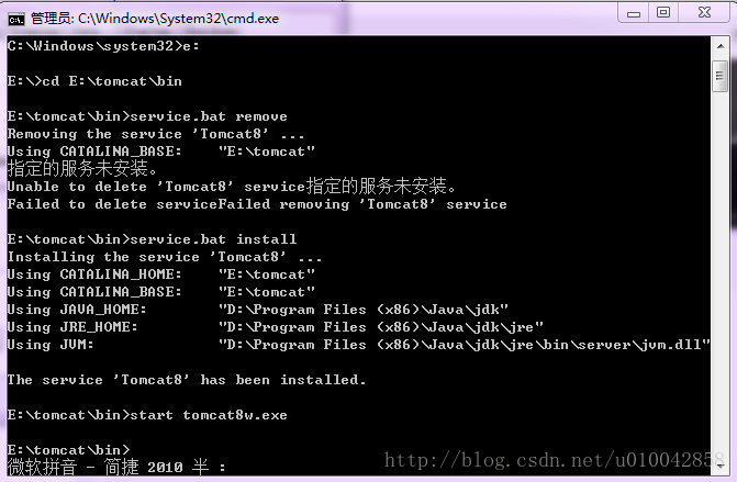 可以先執行service.bat remove,是為了移除tomcat服務,防止出現問題