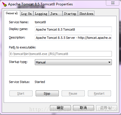 然后啟動tomcat ,使用命令 start tomcat8w.exe,或者在E: omcatin下雙擊tomcat8w.exe