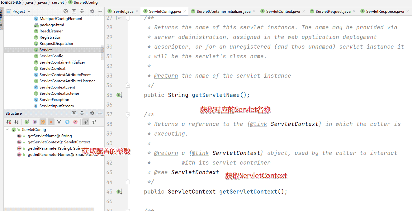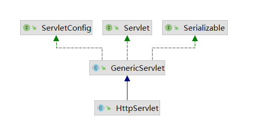 在實際的Servlet開發中,我們會實現HttpServlet接口,在該接口中會實現GenericServlet,而在GenericServlet會實現ServiceConfig接口,從而可以獲取ServletContext容器對象