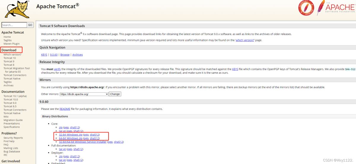 1.首先進入Tomcat官網:http://tomcat.apache.org/,在Download中選擇需要下載的版本,然后根據電腦系統選擇64位/32位的zip,開始下載(要記住安裝路徑!)。