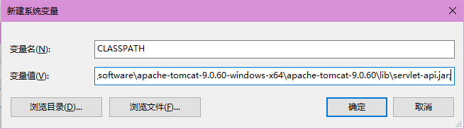 (1) 在ClassPath的變量值中加入:%CATALINA_HOME%libservlet-api.jar;