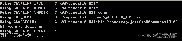有時tomcat版本能夠正常安裝,但啟動時檢測到java 版本不對就會出現啟動黑屏一閃而過的現象。例如:tomcat 10.1-M14版本能夠在java version “1.8.0_131”下用命令提示符安裝成功,運行時卻出現啟動黑屏一閃而過的現象,查了很久都沒有發現原因,最近官方出了安裝提示才明白問題出在運行需要Java 11 或更高版本環境。
