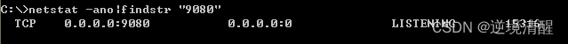如果你修改過tomca t端口設置,請查找你的tomcat使用端口,例如,曾把tomcat端口修改成9080,此時查詢9080端口使用情況的命令為: