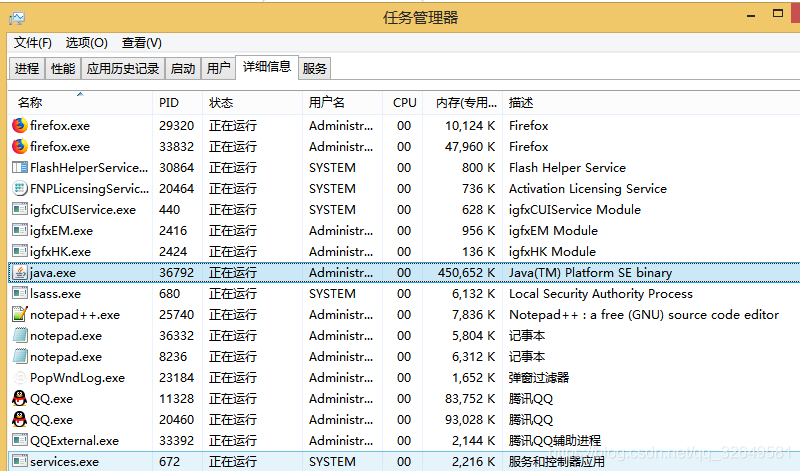 “任務欄”右鍵單擊選擇“任務管理器”,點擊“詳細信息”,找到PID列為4196的進程,右擊殺掉這個進程。再去點擊startup.bat。看是否仍然閃退。****