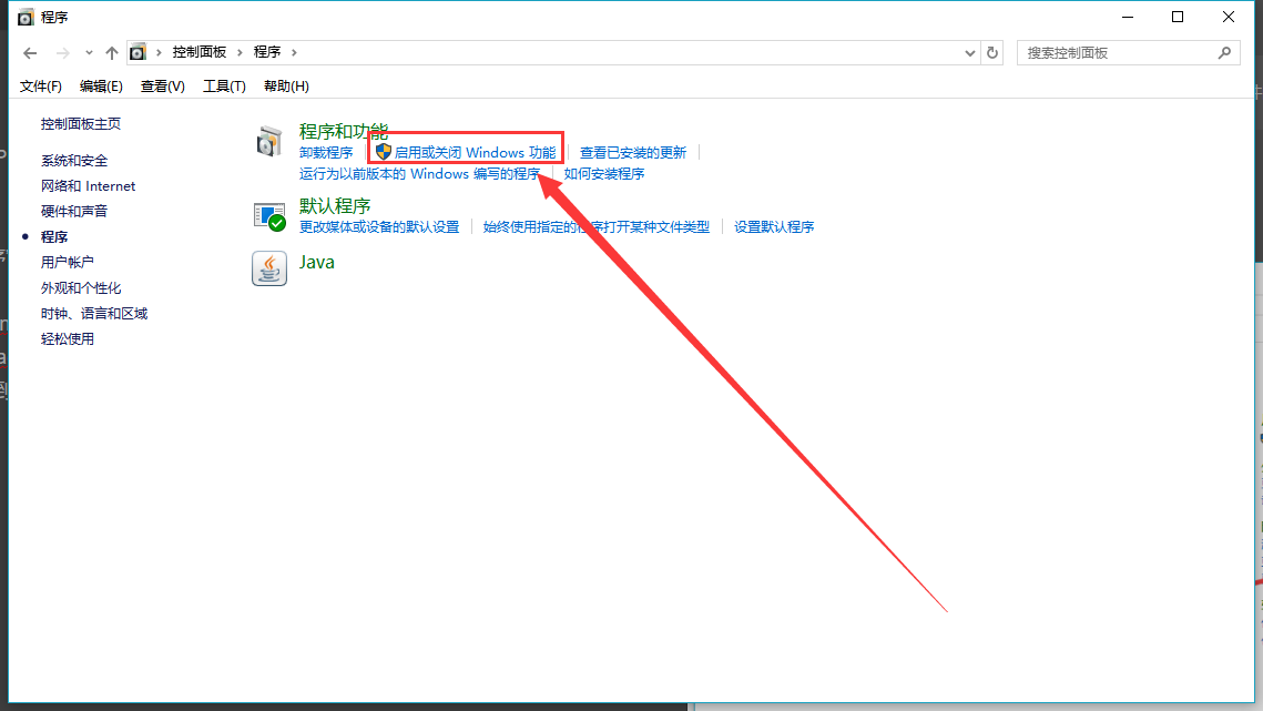 2.在打開的“程序”窗口中,找到“啟用或關(guān)閉windows功能”點擊打開,如下圖所示: