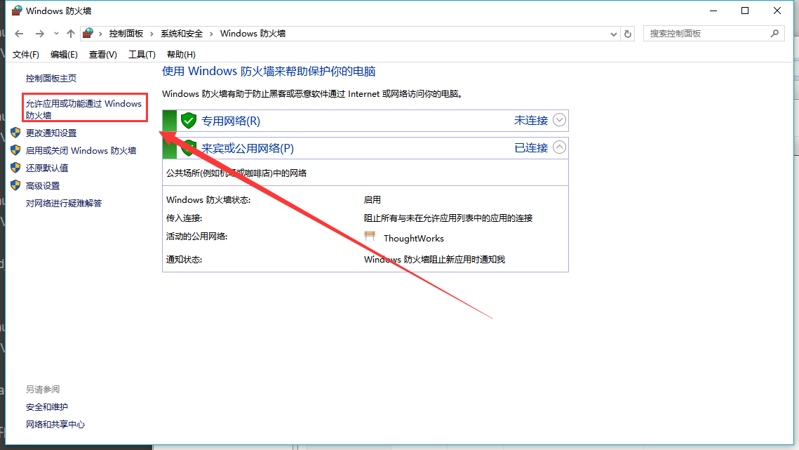 2.點擊允許應(yīng)用或功能通過Windows訪問防火墻