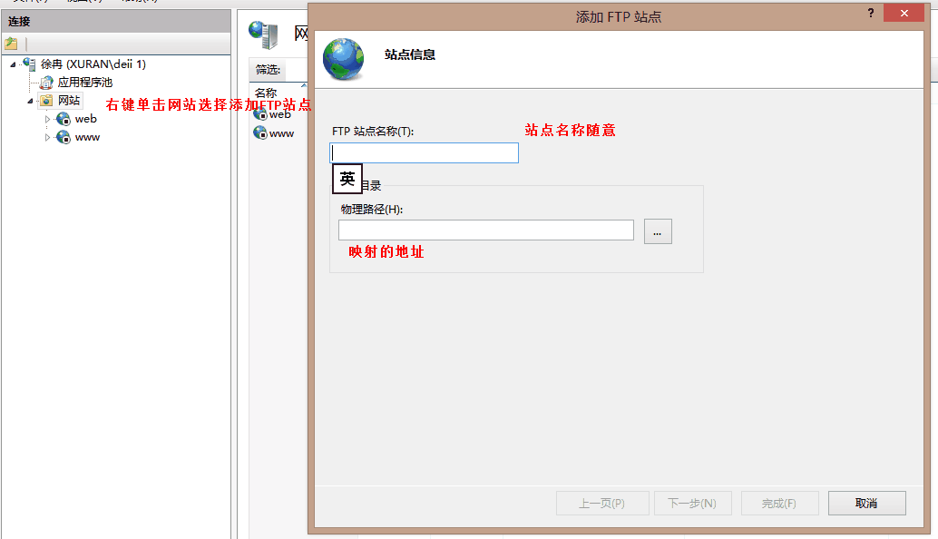 如果只是想設置簡單的FTP,則“身份驗證”和“授權”都勾選“匿名”,并且給匿名設置相應的權限,點擊“完成”,完成FTP站點的設置。其實我也是這么設置的