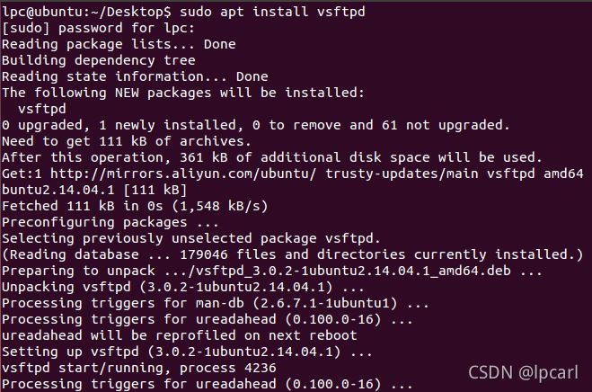 sudo apt install vsftpd