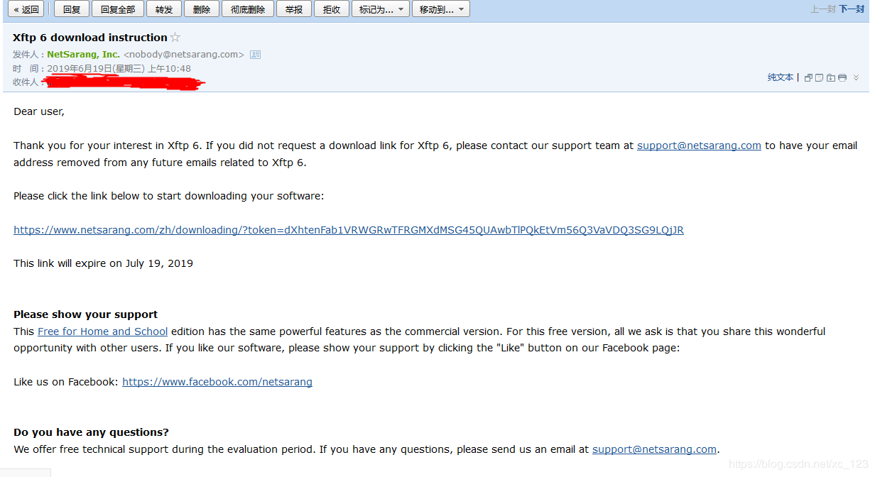接收到郵件就可以點擊鏈接下載了。