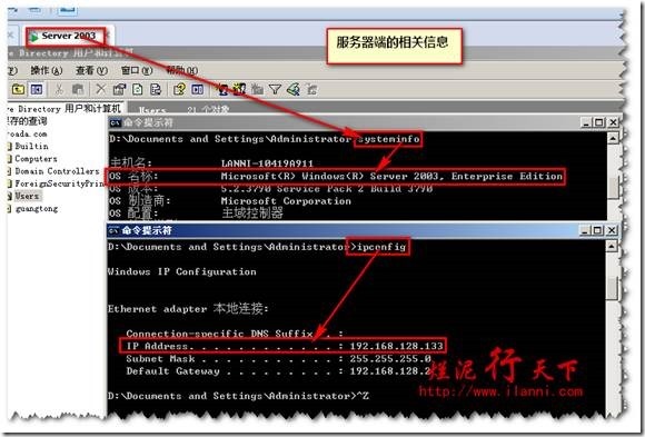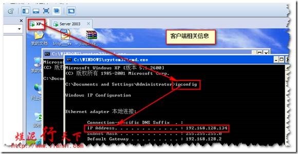我們以下的全部試驗是在服務器windows server 2003 企業版下進行的,IP為192.168.128.133,客戶端為XP,IP為192.168.128.134。