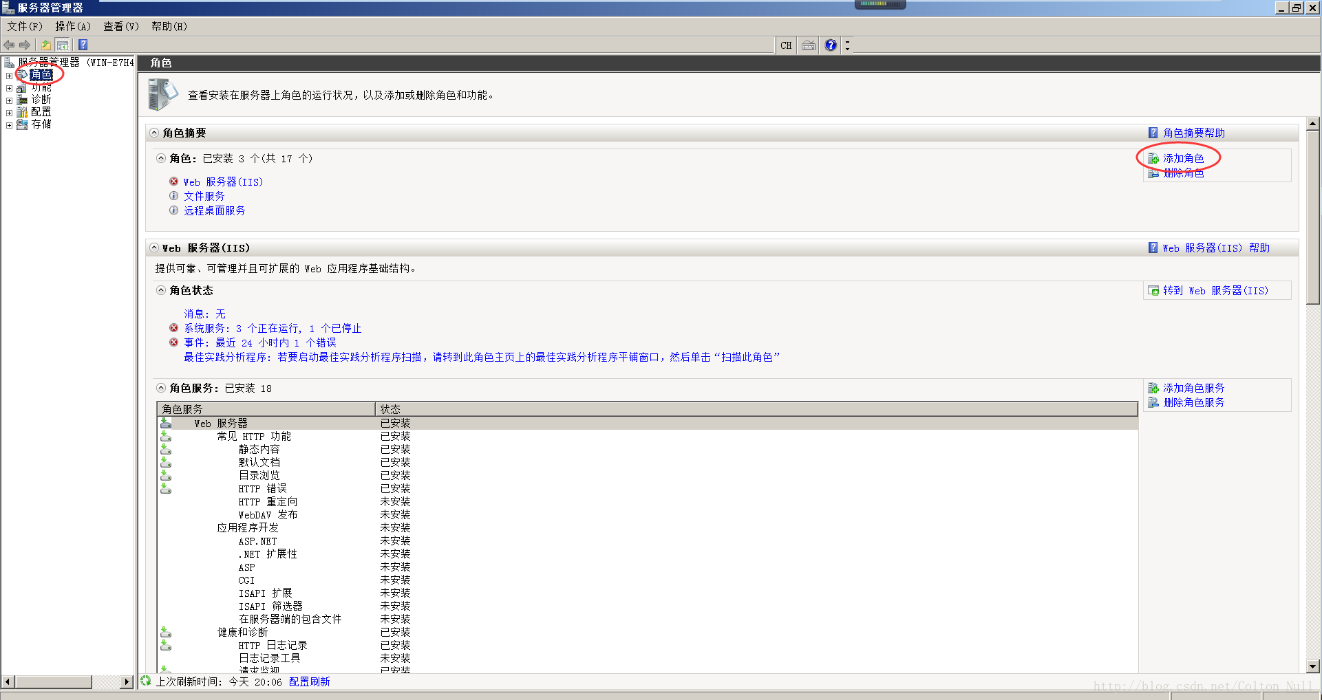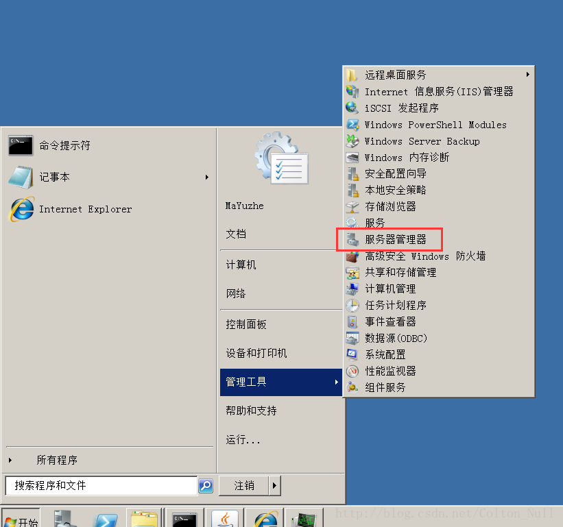 實際上這玩意叫服務(wù)器管理器,在開始菜單–>管理工具–>服務(wù)器管理器也能打開。
