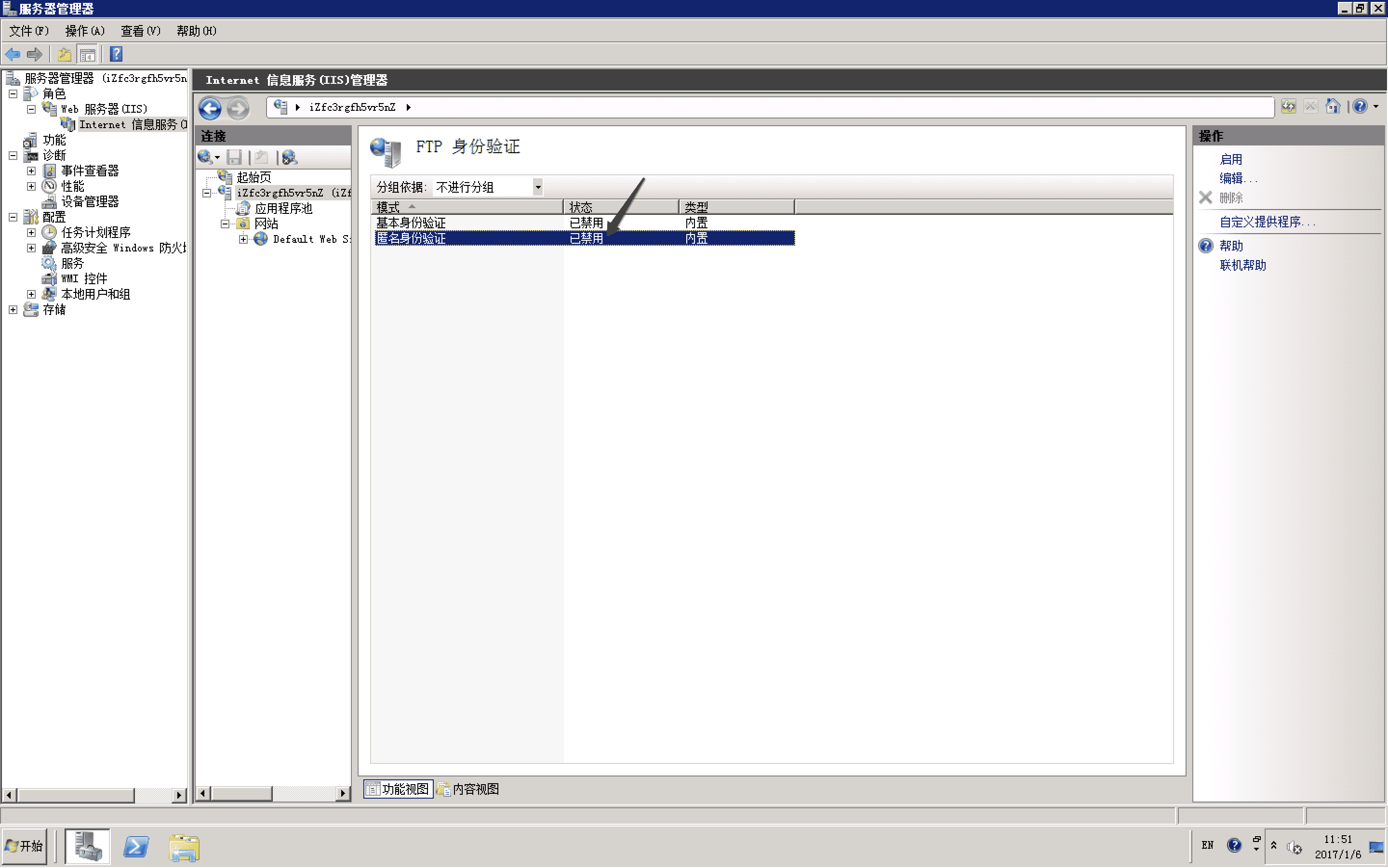 Windows 2012系統 FTP 禁用匿名登錄服務