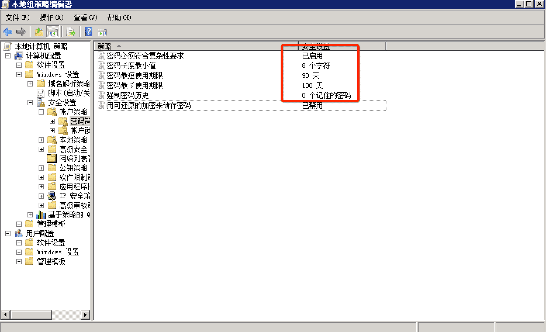 在 Windows 系統中,強密碼策略是通過組策略控制的。您可以打開本地組策略編輯器(gpedit.msc),計算機配置 > Windows 設置 > 安全設置 > 賬戶策略 > 密碼策略,啟用密碼復雜策略。