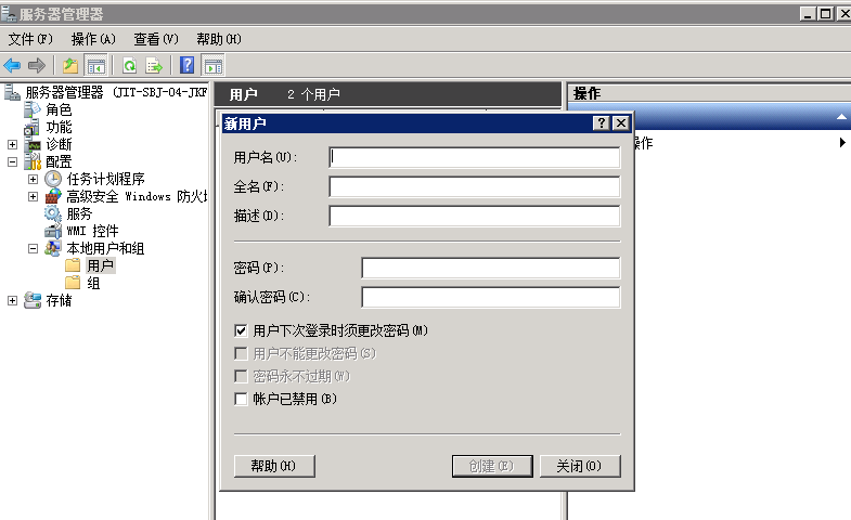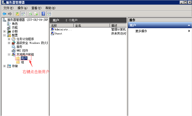 1、找到服務器管理器——配置——本地用戶和組,如圖: