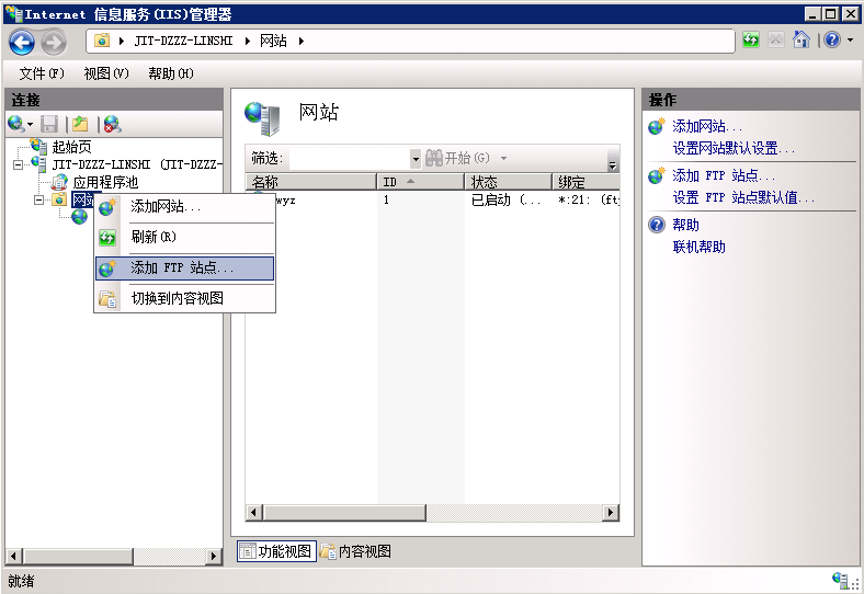 3、在網站右鍵,選擇添加FTP站點,如圖: