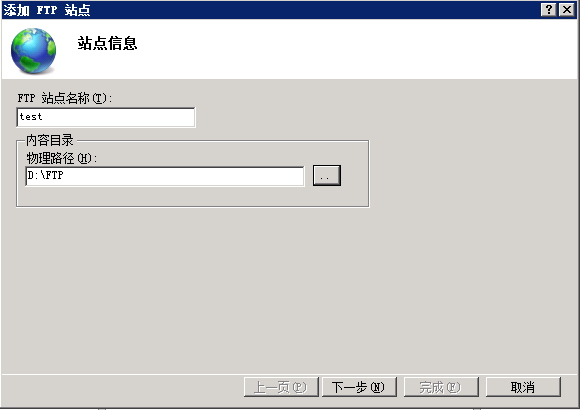 5、輸入相關FTP服務器信息,與物理路徑,如圖: