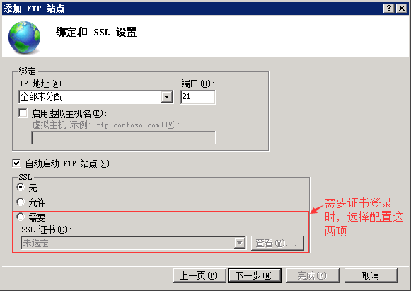 6、點擊下一步,配置綁定和SSL設置信息,如圖: