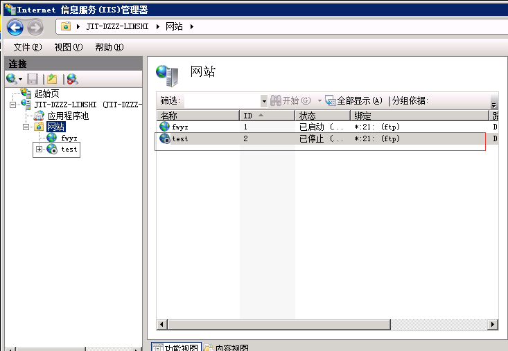 8、點擊完成,在網站下方看到剛剛建的FTP服務器,如圖: