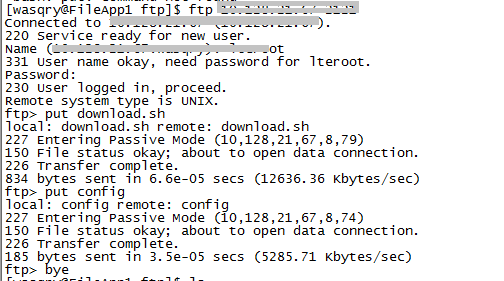 FTP>bye,結束和遠程Linux FTP服務器的連接。