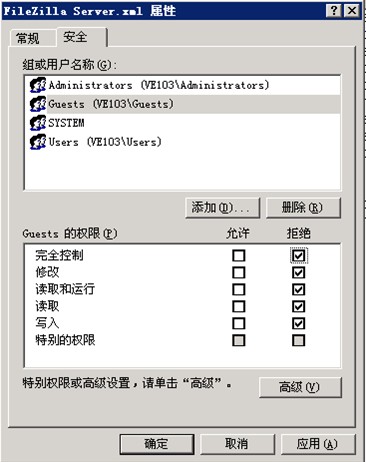 注意:在FileZilla Server里設置的對文件、目錄的權限,需要依賴Windows操作系統中SYSTEM帳號對文件、目錄的權限設置。