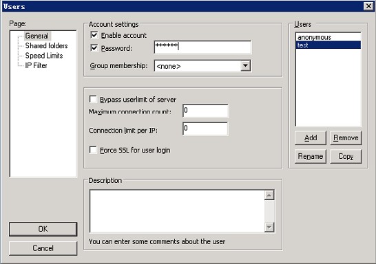 Max.Number of users:允許最大并發連接客戶端的數量。(0為不限制)