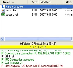 登錄成功后,可以看到剛才制定的FTP目錄下的文件,并具有相應的上傳、下載權限。