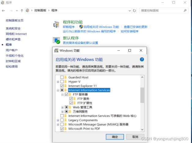 1 為windows開啟ftp功能:控制面板–>程序和功能–>打開或關閉Windows功能