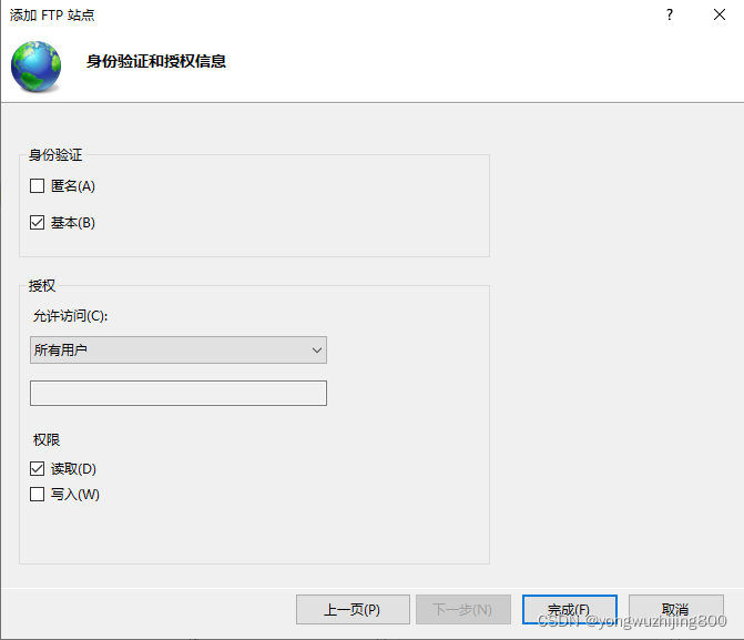 2.4設置權限,建議設置成讀取狀態,點擊完成