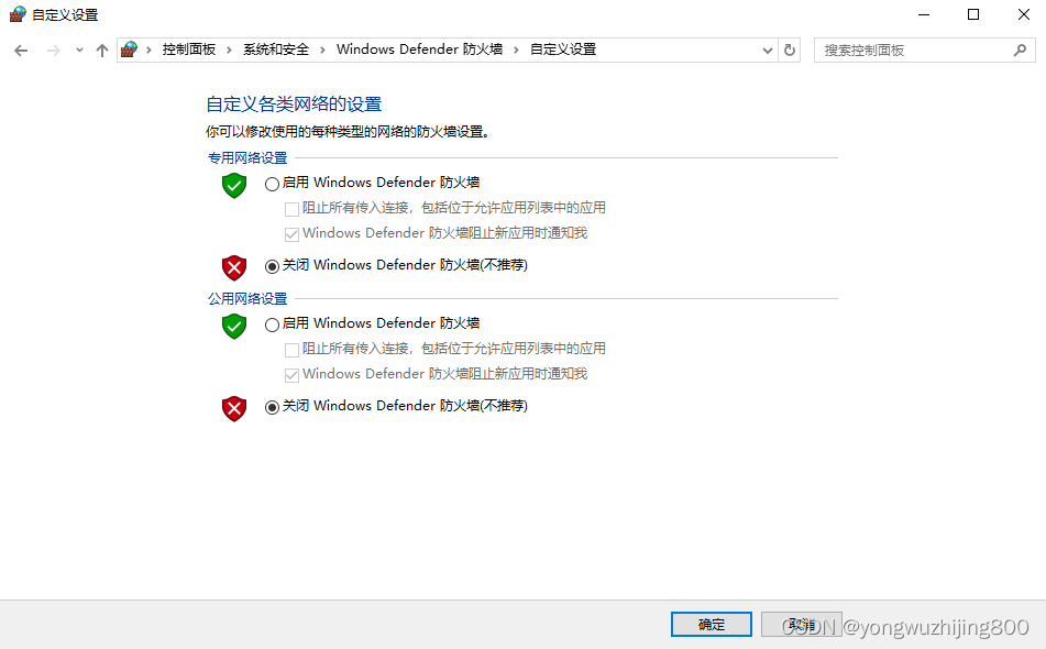 3.2 啟用或關閉windows Defender 防火墻