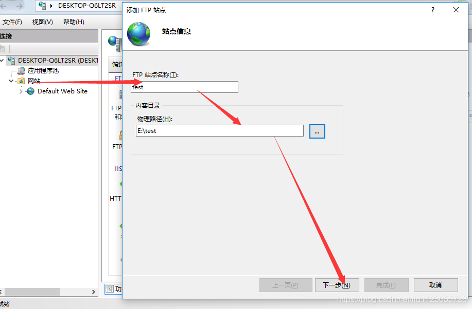 1)、網站—>添加FTP站點…—>站點信息
