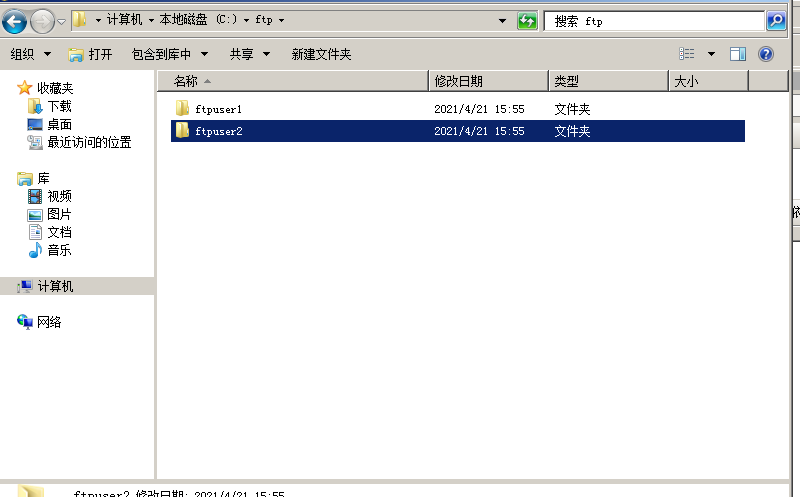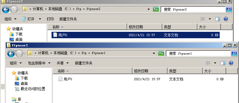 2.在FTP服務器根目錄中添加FTP的目錄,與用戶目錄,并在各個目錄中做好標記