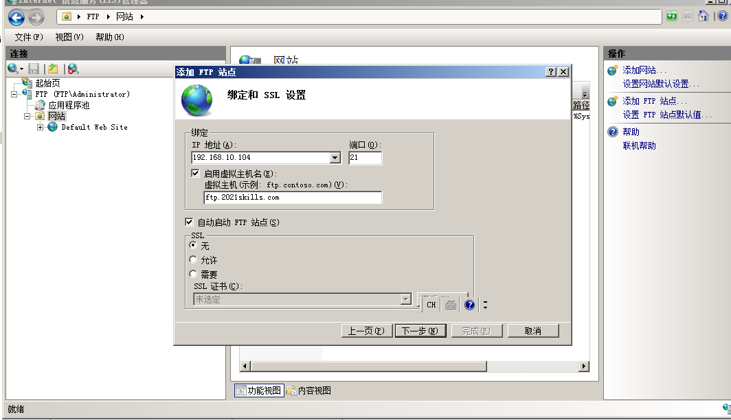 3.建立站點ftp.2021skills. com,
