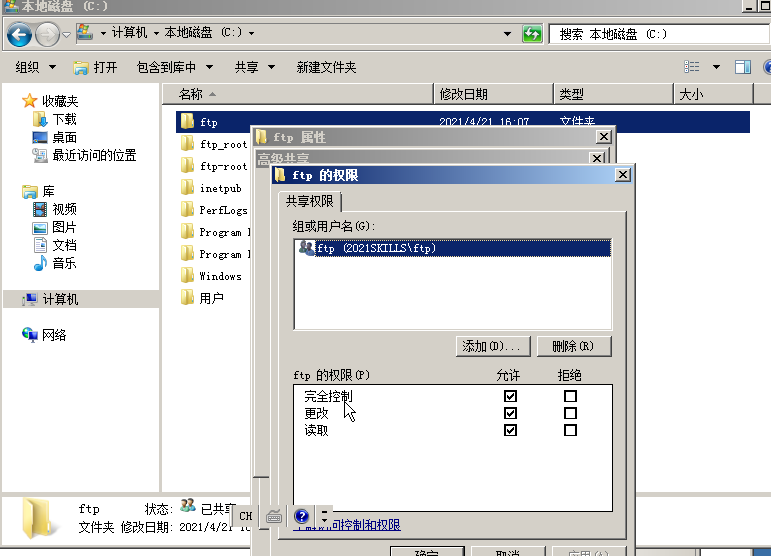 8.將FTP服務器根目錄共享并設置權限給用戶組