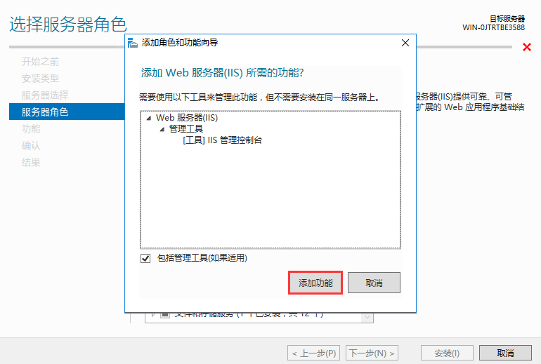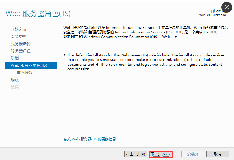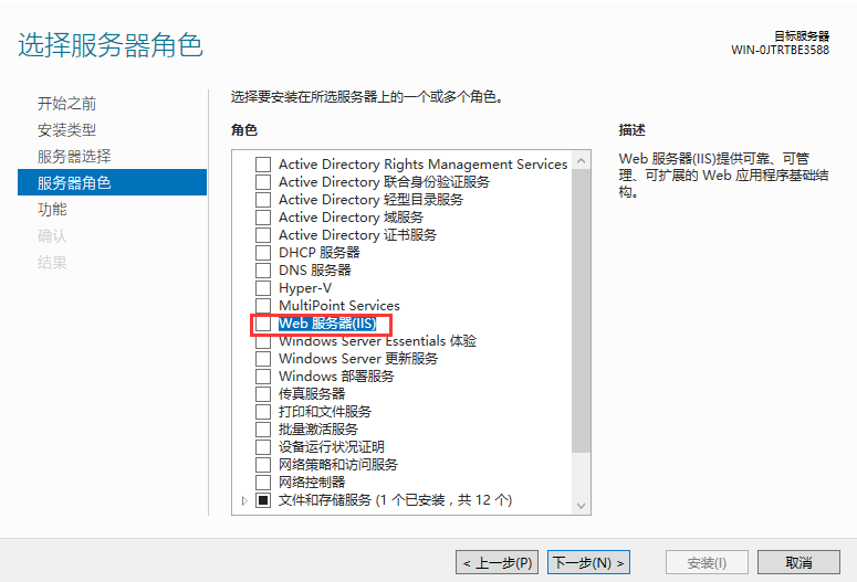 3、找到Web服務器(IIS)并選擇,添加功能完成后點擊下一步