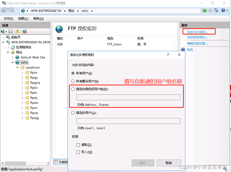 2、FTP授權規(guī)則,添加用戶組