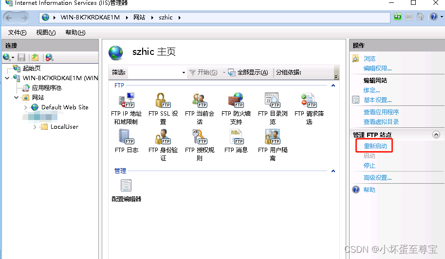 4、重啟FTP網站,進行測試