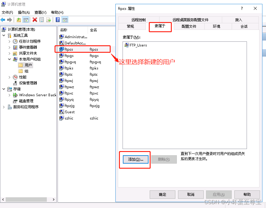 3、把新建的用戶添加到新建的組里