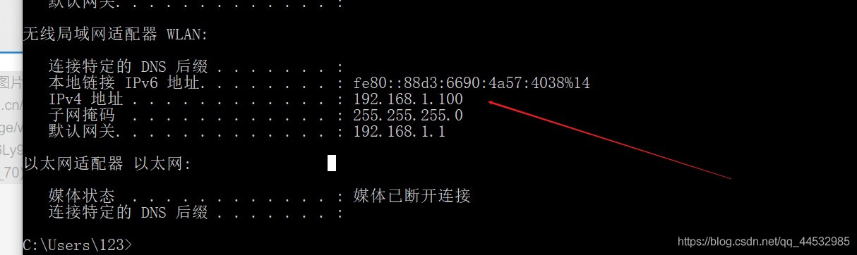 7 在電腦的開始處搜索cmd ,打開cmd 后輸入命令 ipconfig 然后找到下圖所示的ipv4地址,然后填寫到上面的界面(下圖是我的IP地址