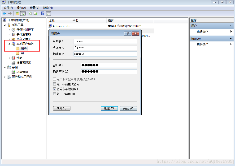 5.配置ftp賬號,計算機(jī)-》右鍵,管理(為保證用戶添加成功,需要重啟電腦)