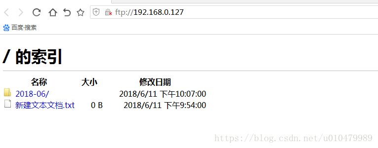 這里基本就配置完成了,重新啟動ftp,在瀏覽器測試能否正常連接