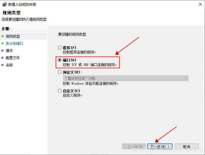 接下來一步步設置新建入站規則向導: