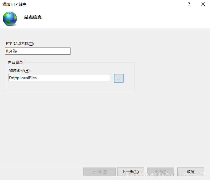 6、自定義站點名,選擇站點物理路徑,選擇下一步