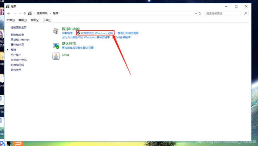 三:在程序打開(kāi)的窗口中找到“啟用或關(guān)閉Windows功能” ,點(diǎn)擊打開(kāi);