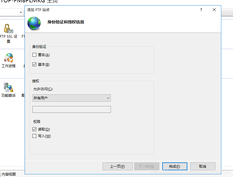 九:設(shè)置“身份驗(yàn)證和授權(quán)信息”,設(shè)置完畢后點(diǎn)擊完成;