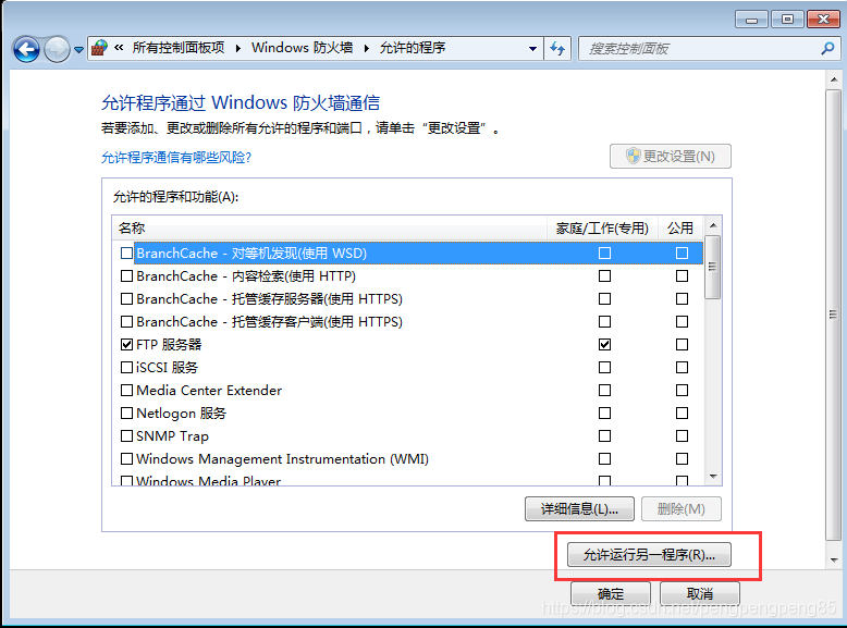 控制面板–>Windows防火墻–>允許程序或功能通過Windows防火墻–>新窗口中允許運行另一程序”。在瀏覽中找到“C:\Windows\System32\svchost.exe”,打開并添加。