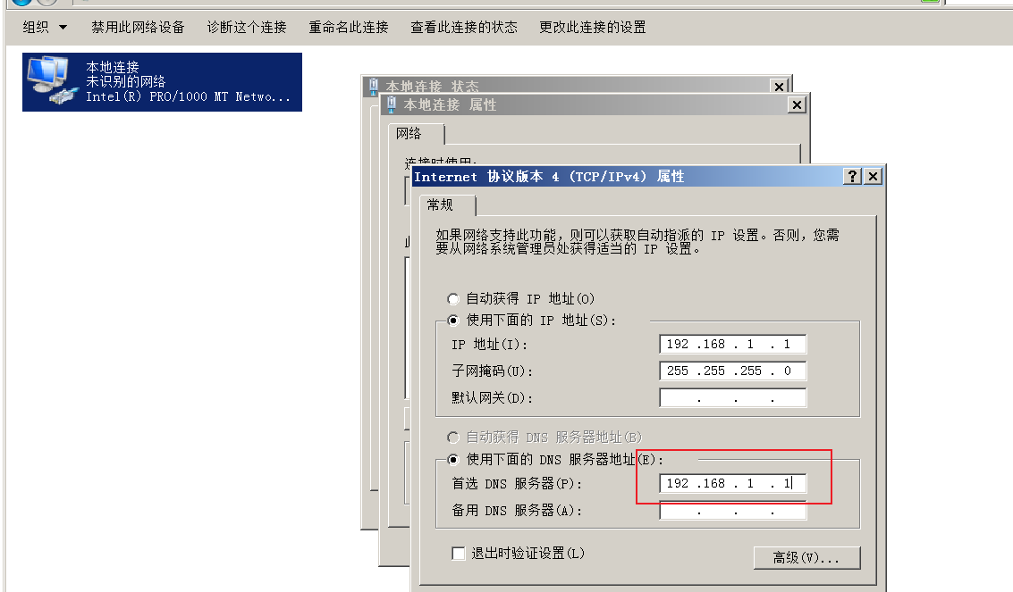 這里的192.168.1.1是這臺虛擬機的ip地址,到時候讓這臺虛擬機的DNS服務器指向它本身