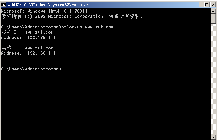 此時去ping www.zut.com, 發現解析成功
