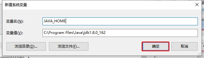 變量值:C:\Program Files\Java\jdk1.8.0_162(JDK的安裝路徑,這里以你自己的安裝路徑為準)