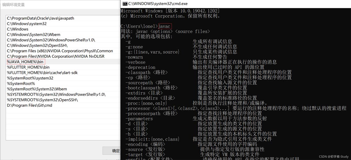 在這一步的時候比較多的人輸入javac之后會出現(xiàn) 不是內(nèi)部或外部命令,也不是可運行的程序。 的情況,后面我也查看自己的環(huán)境變量,也一一輸入了java、javac、java -version的命令都是正常的。然后有讀者說我的系統(tǒng)變量中 Path 的內(nèi)容少了一部分,然后我就去對比了其他人的博客內(nèi)容,我的確少了一部分,但是我運行javac是正常的